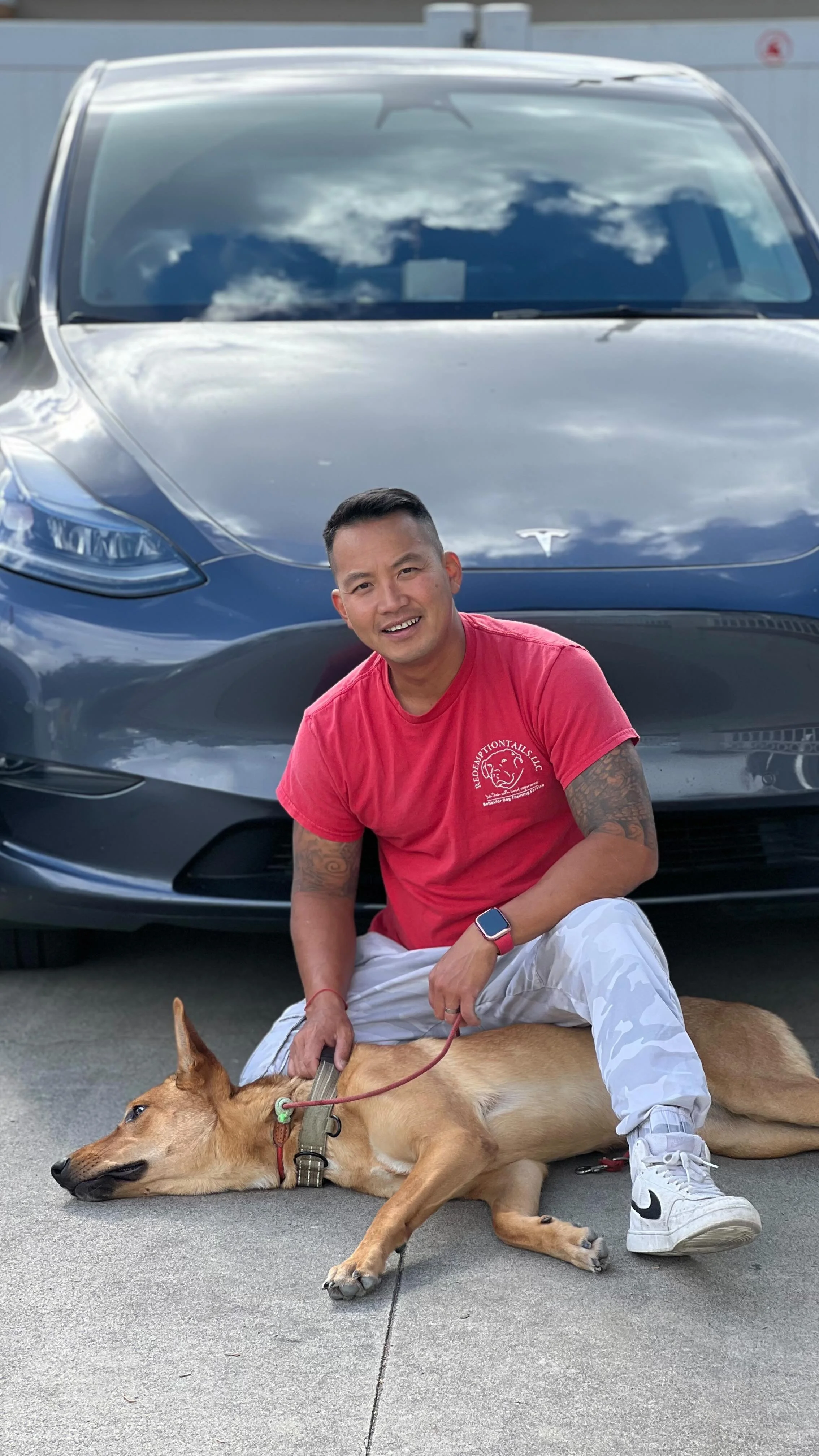 βNhut has truly been a blessing for us to come across for our reactive dog Toshi. Previous to working with Nhut, weβve had a few trainers here and there that have given us some insight into how to better guide Toshi when interacting with the outside world. Heβs been reactive to dogs and strangers in the past and weβd given up hope of Toshi ever getting comfortable with either. Nhutβs faith and belief in Toshiβs potential along with his compassion for him were very touching to see in our first meetings. His dedication, discipline, and patience in working with Toshi has made a huge turnaround in his reactivity to people & dogs. We never thought it was possible for Toshi to co-exist with unfamiliar dogs let alone strangers. All of that has been possible through Nhut and more. Seeing how much Toshi has grown to trust Nhut and his cousin, along with the outside world has been better than we ever imagined.β